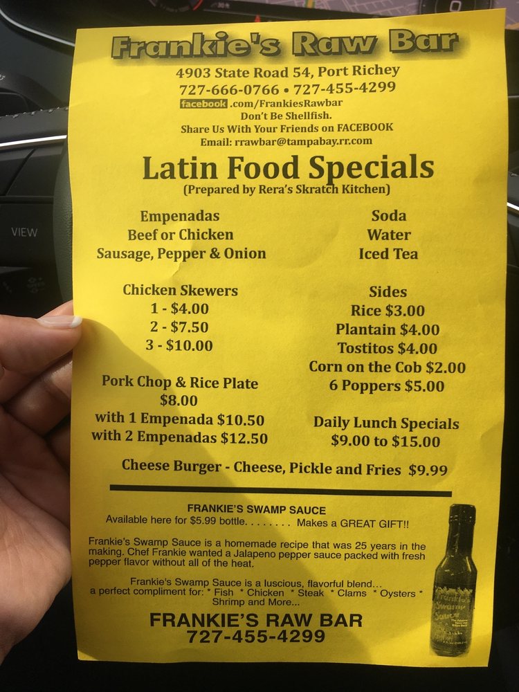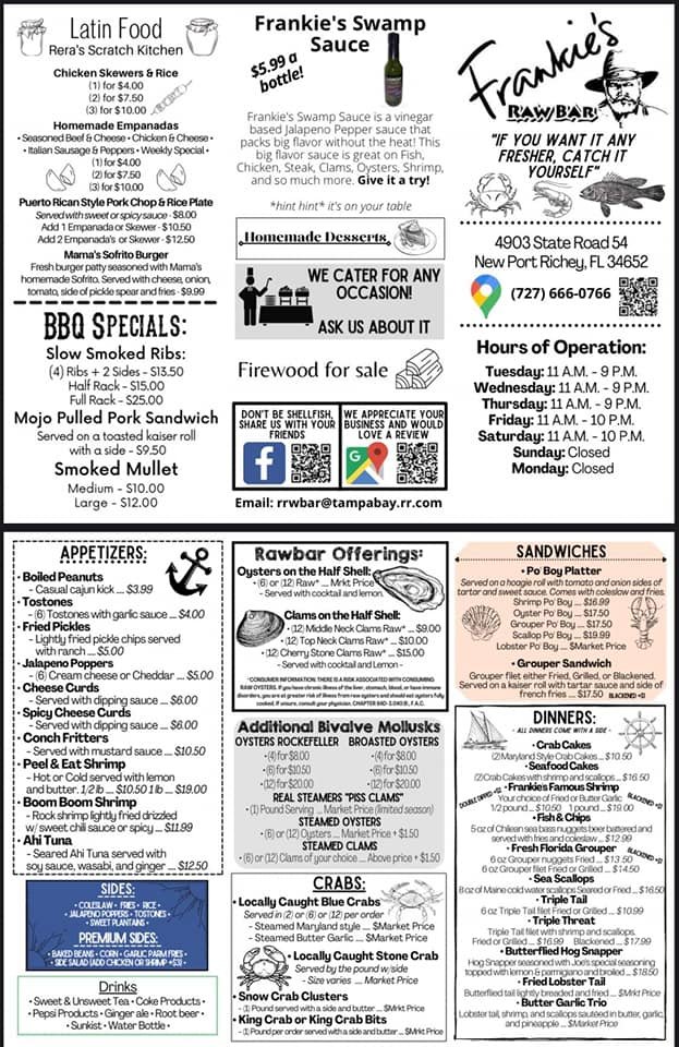 Welcome to Frankie's Raw Bar, a hidden gem in New Port Richey, FL, serving up delightful Latin American and seafood dishes. This outdoor dining spot combines a rustic charm with vibrant tropical decor that transports you far from the bustling road outside.